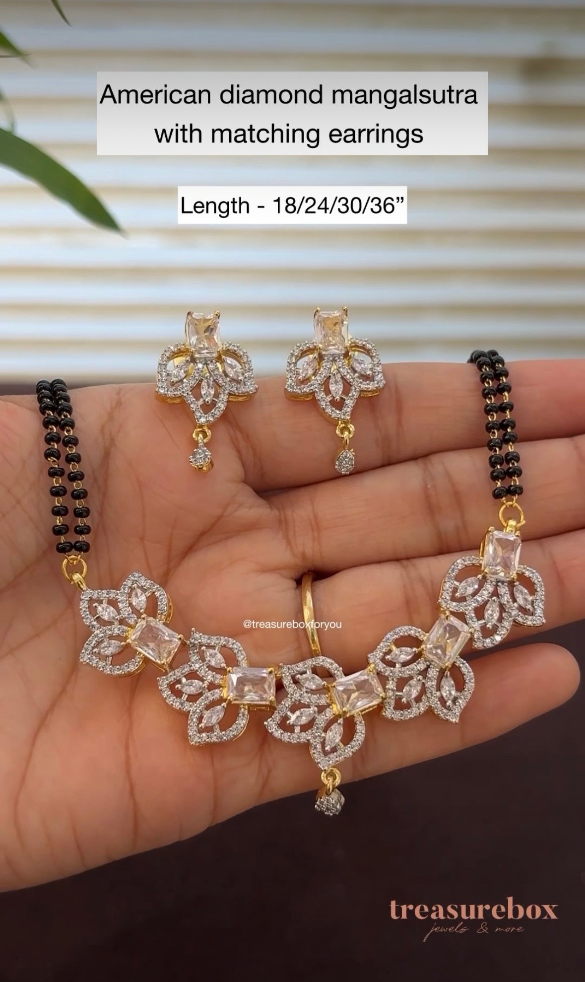 A beautifully crafted mangalsutra set featuring sparkling American diamonds for a refined and timeless look. Designed to balance tradition with modern elegance, this set is perfect for Festive wear as well as special occasions.