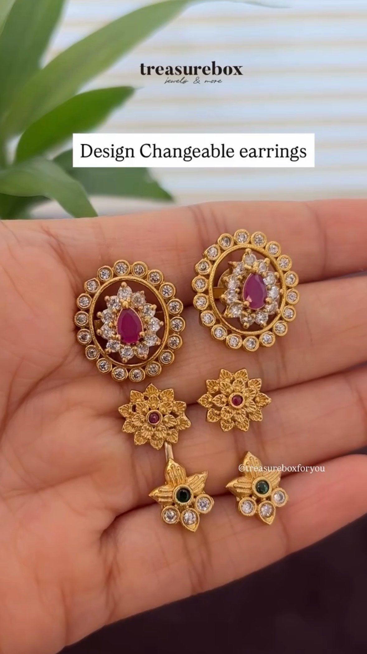 Versatile earrings with three interchangeable design options in one pair. Easy to style, lightweight, and perfect for everyday to festive looks.