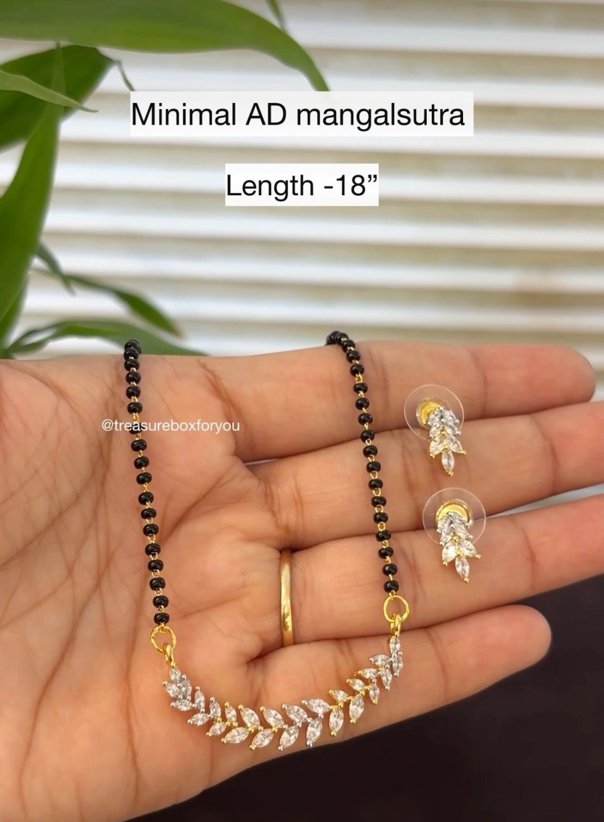 A beautifully crafted mangalsutra set featuring sparkling American diamonds for a refined and timeless look. Designed to balance tradition with modern elegance, this set is perfect for Office wear, Festive wear as well as special occasions.